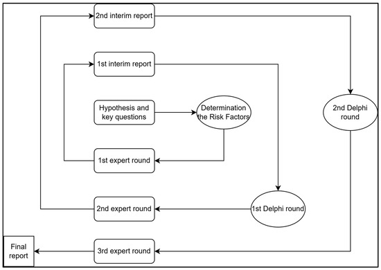 The Delphi process consisted of two rounds of expert evaluations. After the first round, an interim report was prepared, summarizing the initial risk assessments and expert feedback. This report was shared with the experts in the second round, allowing them to revise their assessments based on collective insights. The iterative approach helped refine risk variables and establish consensus among participants.