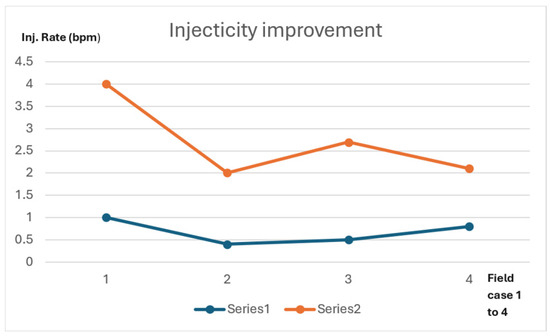 Injectivity increased by 2.5 to 5 times compared to the initial well performance.