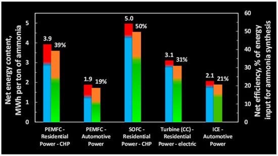- Okanishi, T.; Okura, K.; Srifa, A.; Muroyama, H.; Matsui, T.; Kishimoto, M.; Saito, M.; Iwai, H.; Yoshida, H.; Saito, M.; et al. Comparative Study of Ammonia-fueled Solid Oxide Fuel Cell Systems. Fuel Cells 2017, 17, 383–390. [Google Scholar] [CrossRef]