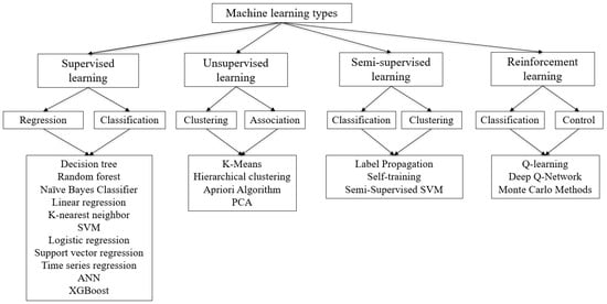 - Supervised learning: uses labeled datasets to train algorithms, making predictions or decisions based on input–output pairs. This is widely used in CCUS to predict system performance, optimize process parameters, and detect anomalies in real-time data. Examples such as artificial neural networks (ANNs), support vector machines (SVMs), and random forests (RFs) are commonly used to estimate CO2 capture efficiency and optimize storage conditions.