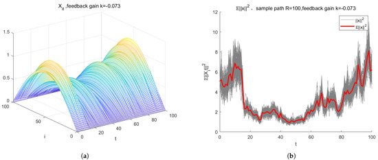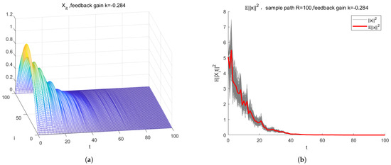 The stable system with feedback controller. (a) The state variable ; (b) the state expectation .