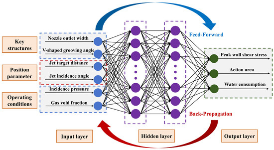 - Chen, Y.-J.; Chen, Z.-S. A prediction model of wall shear stress for ultra-high-pressure water-jet nozzle based on hybrid BP neural network. Eng. Appl. Comput. Fluid Mech. 2022, 16, 1902–1920. [Google Scholar] [CrossRef]