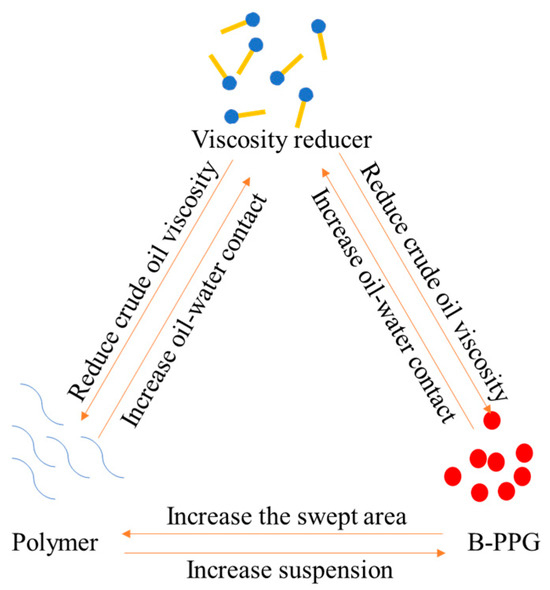 Schematic diagram of the synergistic effect between viscosity reducer, polymer, and B-PPG.