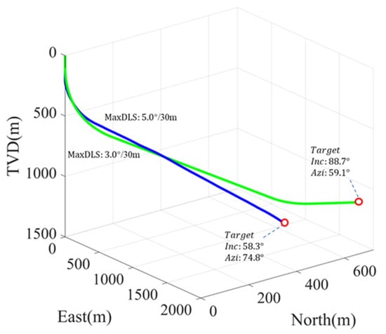 Wang and Gao [] optimized the range of inclination and azimuth angles from the perspective of wellbore stability. Zhang et al. [] developed a shale gas horizontal well trajectory design method that accounts for trajectory drift caused by formation properties and anti-collision constraints. Zhong et al. [] proposed a trajectory optimization method for slide drilling systems to reduce drilling time by replacing long circular-arc sections with shorter straight-line and circular-arc segments. Liu et al. [] were the first to introduce Dubins curves into well trajectory optimization. Pathan et al. [] developed a cluster well trajectory design method that incorporates anti-collision constraints based on predefined trajectory profiles.