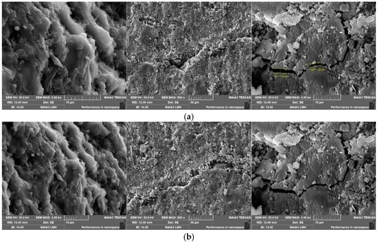 Microstructure of coal rock # 8 before and after drilling fluid treatment; (a) before drilling fluid immersion treatment; (b) after drilling fluid immersion treatment.
