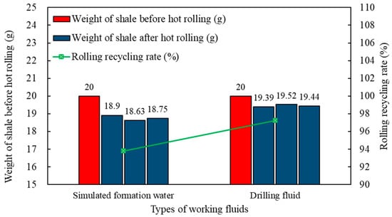 Rolling recovery rate of coal rock in different working fluids.