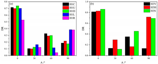 DR of peak stress with different distribution forms of holes: (a) a single hole; (b) three holes.