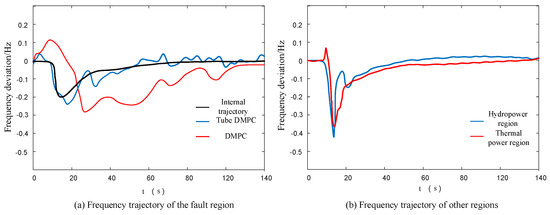 When a fault occurs in a region with renewable energy sources, the units are required to provide as much power as possible. Therefore, tube MPC is adopted for the renewable energy units in a region with renewable energy sources to cope with power fluctuations. Regions with renewable energy sources can provide power support to other fault-affected regions. To speed up the solution of the overall algorithm, we take action. For renewable energy units in these regions, we adopt MPC under RCBF conditions. This helps deal with power fluctuations.
