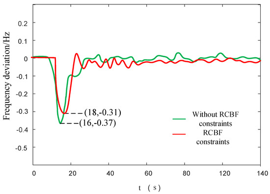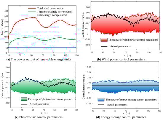 In the simulation of this paper, the capacity of the energy storage is only 50 MW, which obviously cannot meet the requirements for power reserve. In actual situations, after a system with a high proportion of renewable energy is disturbed, the power shortage required by the system is often relatively large, while the capacity of the energy storage is quite limited. Therefore, it is very necessary to reasonably control the renewable energy to provide a power reserve.