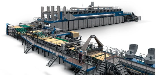 An industrial drying and transfer line (www.raute.com/lines-and-machines/lines/veneer-drying/veneer-drying-line-r7/, accessed on 1 March 2025).