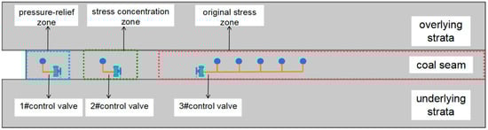 Due to the relatively narrow strike widths in the pressure-relief and stress concentration zones, single-hole drainage systems controlled by valves were implemented in these areas. In contrast, the original stress zone, characterized by a wider strike, employed a group-hole drainage approach with valve-based control.
