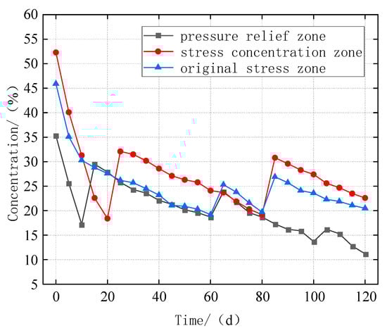 Figure 8. Gas concentration of gas drainage in stress concentration zone.