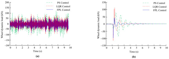 Comparison of wheel dynamic load between C-class road (a) and raised road (b).