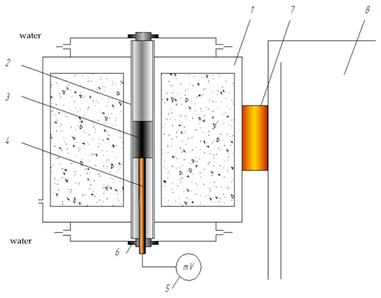 The temperature was measured using a tungsten–rhenium thermocouple TR-5/20, with its hot junction placed at the bottom of the crucible in a reinforced corundum sheath. The full specifications of the high-temperature Tammann furnace are presented in Table 2.