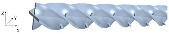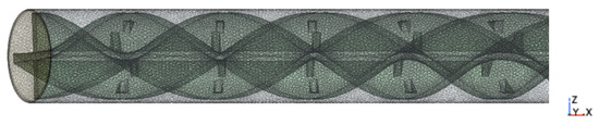 Manglik and Bergles [5,6] carried out experimentations to discuss the heat transfer effect of fluid when tubes were fitted with twisted tapes. The experimental conditions widely contained laminar, transitional and turbulent flow. Kumar and Murugesan [7] reviewed the heat transfer strengthening of various twisted tapes. Saha [8] took a regularly spaced twisted taped circular tube as the research object to study the flow and heat transfer characteristics of fluid in an experiment. The object of Pal and Saha’s [9] experiment was a circular tube fitted with integral spiral corrugation roughness, as well as a circular tube fitted with oblique-teeth twisted tapes. Liu [10] proposed a novel composite insertion (CV), which combines a coaxial cross twisted-pair tape (CCDTT) with a vortex generator.