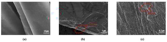 In this study, conductive fabrics were fabricated using the SWCNT (Single-Walled Carbon Nanotube) (KORBON Co., Ltd., Gangneung, Republic of Korea) dip-coating process on white, red, green, and blue fabrics made from 40 s 100% cotton twill. Cotton fabrics are composed of cellulose fibers, which possess a complex surface structure, high porosity, and functional groups such as hydroxyl groups that enable the absorption of water and polar solvents [,]. This structure facilitates strong van der Waals interactions with SWCNT, allowing for robust adhesion and uniform coating due to the mechanical flexibility of SWCNT and the high surface area and absorbency of cotton fibers [,]. Cotton-based conductive fabrics exhibit excellent electrical conductivity while maintaining the softness and flexibility of cotton fibers, ensuring superior wearability [,]. Additionally, their porous structure provides high breathability, making them well-suited for skin-contact wearable devices by improving overall comfort. The strong adhesion between SWCNTs and the textile surface prevents the delamination or degradation of the coating, ensuring stable electrical properties even under repeated bending and stretching. Given these advantages, conductive fabrics based on SWCNT-coated cotton textiles demonstrate significant potential for applications in various fields, including wearable electronics, smart textiles, health monitoring sensors, and energy storage devices.