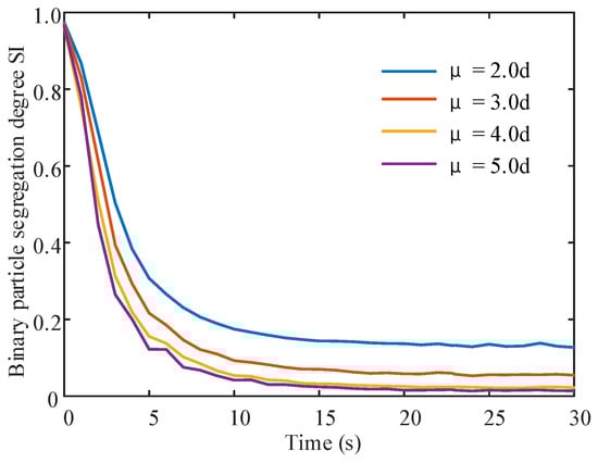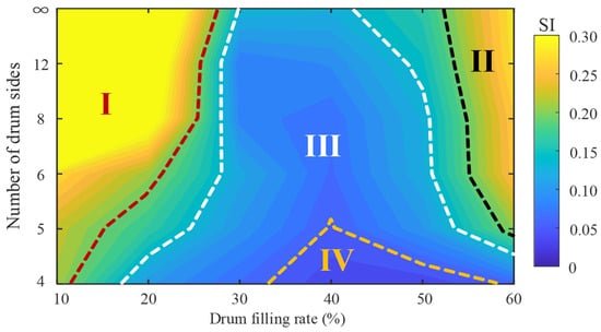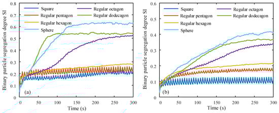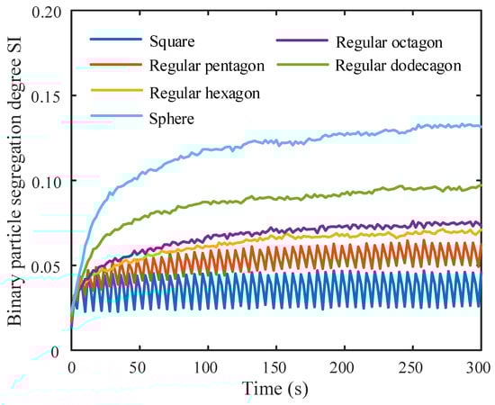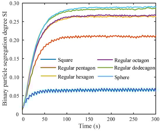 - With the increase in the number of drum sides, the axial inclined seepage effect gradually plays a key role, which is characterized by a continuous increase in the final steady segregation index of binary particles.