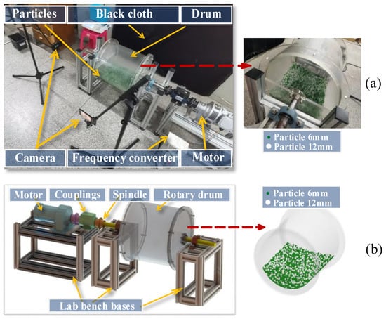 - Zhao, Y.; Zhang, L.; Song, C.; Li, W.; Qin, H.; Wang, Q. Numerical Simulations of Particle Motions at Continuous Rotational Speed Changes in Horizontal Rotating Drums. Processes 2023, 11, 47. [Google Scholar] [CrossRef]