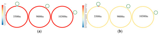 The evolution process of the MRT-LBM includes two steps: the collision step and the streaming step. The collision step is executed in the moment space, as shown in Equation (8), and then mapped to the velocity space: