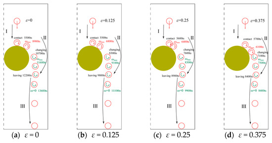 Figure 12. Change in rotation direction of particle sedimentation at different ε .