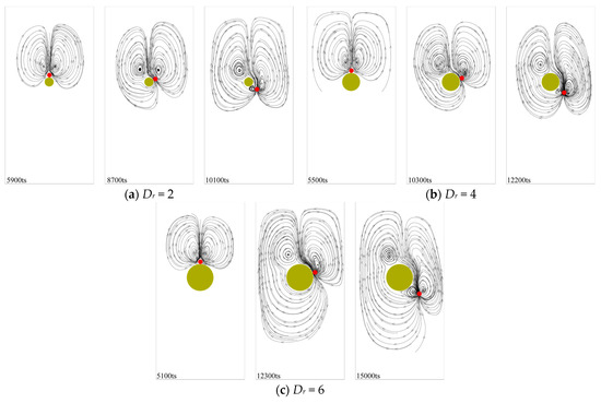 Figure 16. Streamline diagram of particle sedimentation at different Dr.