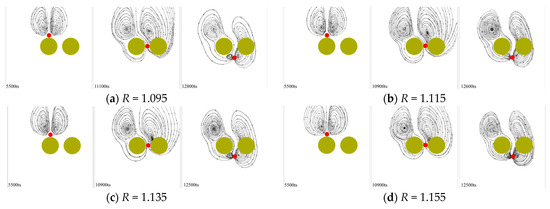 Figure 21. Streamline diagram of particle sedimentation at different R.