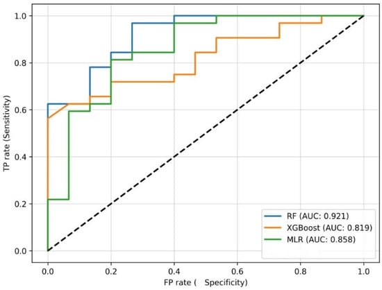 Figure 4. ROC curve comparison between RF, MLP, and XGBoost models.