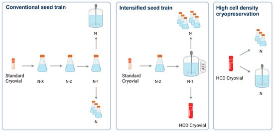 - Müller, J.; Ott, V.; Eibl, D.; Eibl, R. Seed Train Intensification Using an Ultra-High Cell Density Cell Banking Process. Processes 2022, 10, 911. [Google Scholar] [CrossRef]
