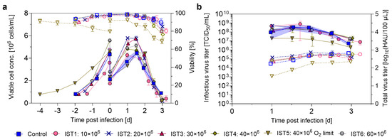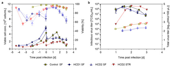 - Coronel, J.; Behrendt, I.; Burgin, T.; Anderlei, T.; Sandig, V.; Reichl, U.; Genzel, Y. Influenza A virus production in a single-use orbital shaken bioreactor with ATF or TFF perfusion systems. Vaccine 2019, 37, 7011–7018. [Google Scholar] [CrossRef]