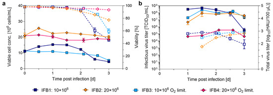 - Bissinger, T.; Fritsch, J.; Mihut, A.; Wu, Y.; Liu, X.; Genzel, Y.; Tan, W.S.; Reichl, U. Semi-perfusion cultures of suspension MDCK cells enable high cell concentrations and efficient influenza A virus production. Vaccine 2019, 37, 7003–7010. [Google Scholar] [CrossRef]