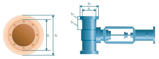 In this context, the subscripts 1–4 in the cylinder dimensions, respectively, represent the valve upper part, the valve top disc, the valve–equipment connection point, the bearing housing, and the bearing support, as shown in Figure 2. The calculated results were summed with the radiative heat transfer, resulting in a total heat dissipation of 2016.7 kJ/h.
