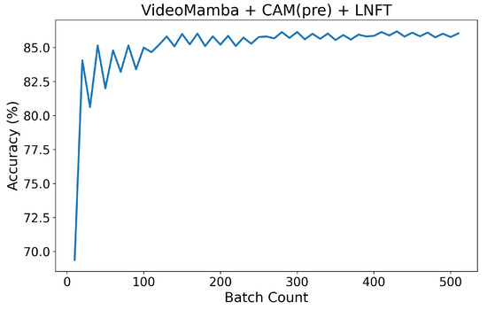 The combination of VideoMamba+CAM+LNFT is equivalent to directly training CFVM end-to-end. As the model becomes more complex, the training time also increases. The training time of this combination is nearly 13 times that of the other combinations. Moreover, the final classification performance of this combination is not ideal, and the accuracy is even lower than that of VideoMamba, not exceeding 80%. When we first pre-train the CAM block, we obtain optimal attention weight parameters. After loading the weight parameter, we perform end-to-end training on CFVM. VideoMamba + CAM (pre) + LNFT ultimately achieve an accuracy of 85.7%. Compared to the other four combinations, the accuracy of this combination is improved by at least about 2%. Therefore, this experiment confirms the effectiveness of all proposed components and training methods in improving accuracy.