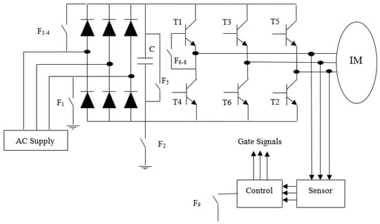 The major faults of 3ϕ V/F-controlled VSIs are categorized below and shown in Figure 1.