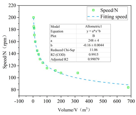where N denotes the speed in r/min, and V denotes the volume in m3.