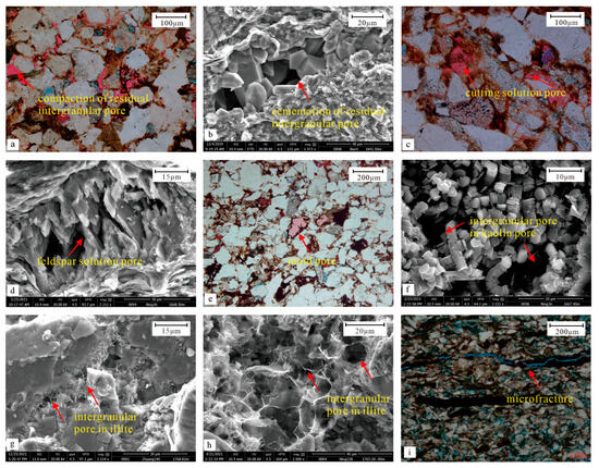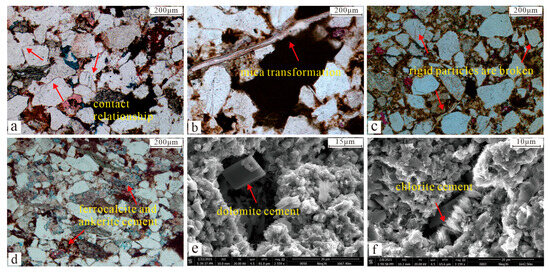 - Zhong, D.K.; Zhu, H.H.; Sun, H.T.; Cai, C.; Yao, J.L.; Liu, X.Y.; Deng, X.Q.; Luo, A.X. Diagenesis and Porosity evolution of sandstone in Longdong Area,Ordos Basin. Earth Sci. Front. 2013, 20, 61–68. [Google Scholar]