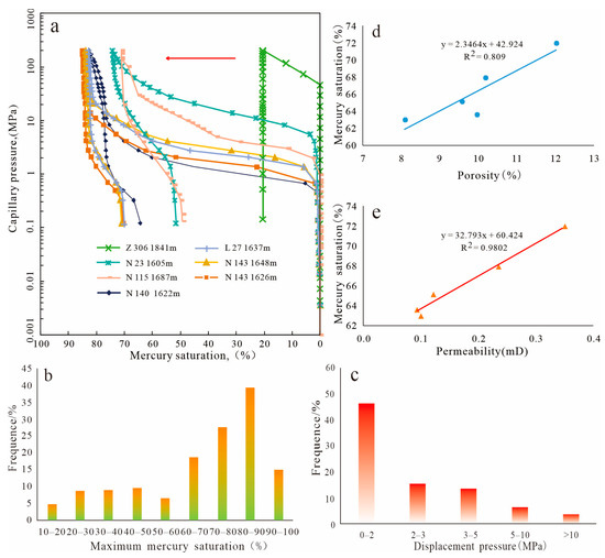 - Xiao, Y.; Xiao, H.; Jiang, Z. Analysis on difference of pore-throat structure of tight sandstone reservoirs characterized by constant-rate mercury intrusion and high-pressure mercury intrusion experiments. China Energy Environ. Prot. 2021, 43, 59–63. [Google Scholar]