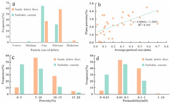 - We established the formation mode of the high-quality reservoir of the Chang 7 interbedded shale in the HSN area. The formation of the sandy debris flow is attributed to medium compaction, medium cementation, and medium dissolution, which results in good physical properties and large pore sizes. It is the main factor for high-quality reservoirs in the study area.
