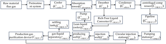 Therefore, the total cost of the utilization and storage system in the CCUS whole-process system can be calculated as follows: