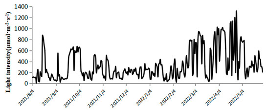 Changes in Light Intensity from 1 August 2021 to 30 May 2022 at 12:00 PM per day.