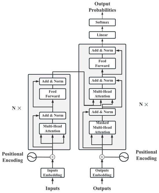 Transformer. The production performance of a water-flooding reservoir is closely related to many geological and engineering factors such as the formation pressure and water injection rate. And it shows strong correlation and causality in time, constituting time series data. The limitations of a GNN in processing time series data have led to the introduction of Transformer. By leveraging Transformer’s self-attention mechanism and focusing on key nodes that significantly impact production dynamics, it effectively analyzes and handles the aforementioned complex time series problems. Transformer is a network architecture based on the attention mechanism. This architecture mainly consists of an encoder and a decoder. The typical structure of Transformer is shown in Figure 1.