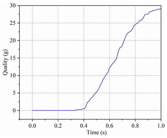 A CFD-DEM coupling method was employed for simulation. Particle clusters were stacked in EDEM, while the inlet air velocity was specified in Fluent. In the CFD calculations, pressure solvers and transient simulations were utilized. Turbulence effects were accounted for using the Realizable k − ε model. The CFD time step is set to 1 × 10−4 s, and the DEM time step is set to 1 × 10−6 s. This can not only capture the transient collisions of particles, ensuring the authenticity and accuracy of particle motion, but also ensure the synchronization of flow field updates with particle motion. The boundary conditions included a velocity inlet for the gas inlet, a pressure outlet for the gas outlet, and a non-slip condition for the pipe walls. The specific parameters of numerical simulation are shown in Table 4.
