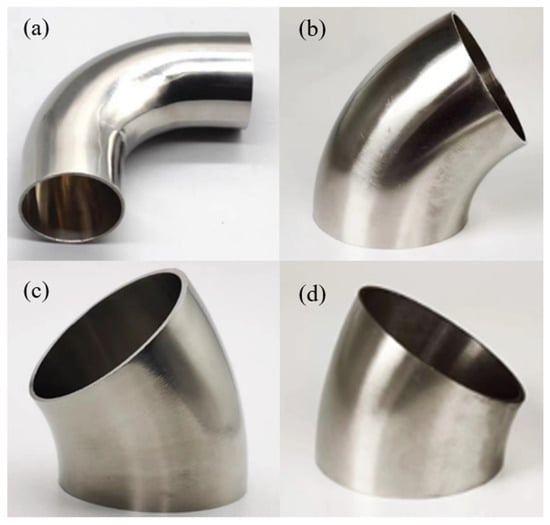 Four common elbows with different angles: (a) 90°; (b) 120°; (c) 135°; and (d) 150°.