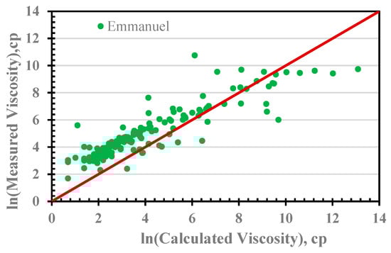 Cross plot of ln(viscosity) with Emmanuel correlation.
