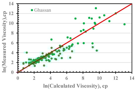 Cross plot of ln(viscosity) with Ghassan correlation.