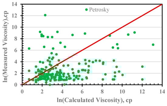 Cross plot of ln(viscosity) with Petrosky correlation.