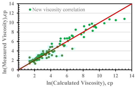 Cross plot of ln(viscosity) with new viscosity correlation (Validation).