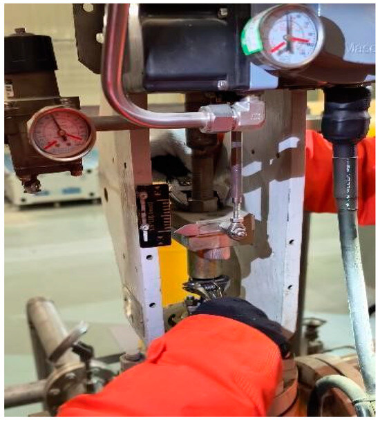 To validate the effectiveness of the constructed fault warning model, this study examines a deflection fault in the valve position sensor connecting rod of the mineral oil system in a gas compressor station, which occurs at 17:00 on 11 December 2024, as shown in Figure 6. This fault triggers a chain reaction in the control system: First, mechanical misalignment of the connecting rod causes significant deviation between the sensor signal and actual valve position, resulting in erroneous feedback to the control system. Second, this deviation induces sustained oscillations in the control loop, not only reducing regulation accuracy but also accelerating mechanical wear of the actuator. More critically, prolonged operation under this condition leads to valve sticking or operational failure, posing safety risks during emergency scenarios. Additionally, system energy consumption increases substantially due to continuous corrective actions by the control loop.