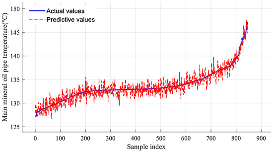 As seen from Figure 4, the predicted values show high consistency with the actual values in terms of variation trends. The model accurately reflects the dynamic change process of mineral oil header temperature.