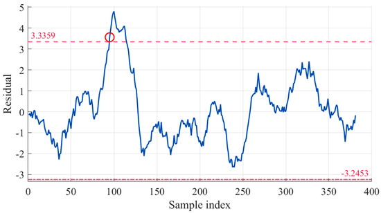 Moreover, considering that even during normal equipment operation, a very small number of residuals may exceed this range, we introduce a sliding window method [30] to avoid false alarms. By setting an appropriate window width, we conduct localized analysis of anomaly points, enhancing the robustness and accuracy of the warning system.