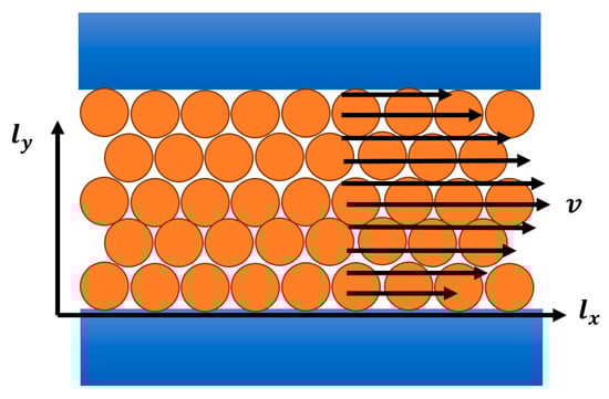 At the boundaries of the flow channel (fracture surfaces), the velocity is v 0 , as shown in Figure 5. Thus, v = v 0 ( l y = 0 and l y = w f ). With this boundary condition, the general solution of Equation (11) can be obtained [21]: